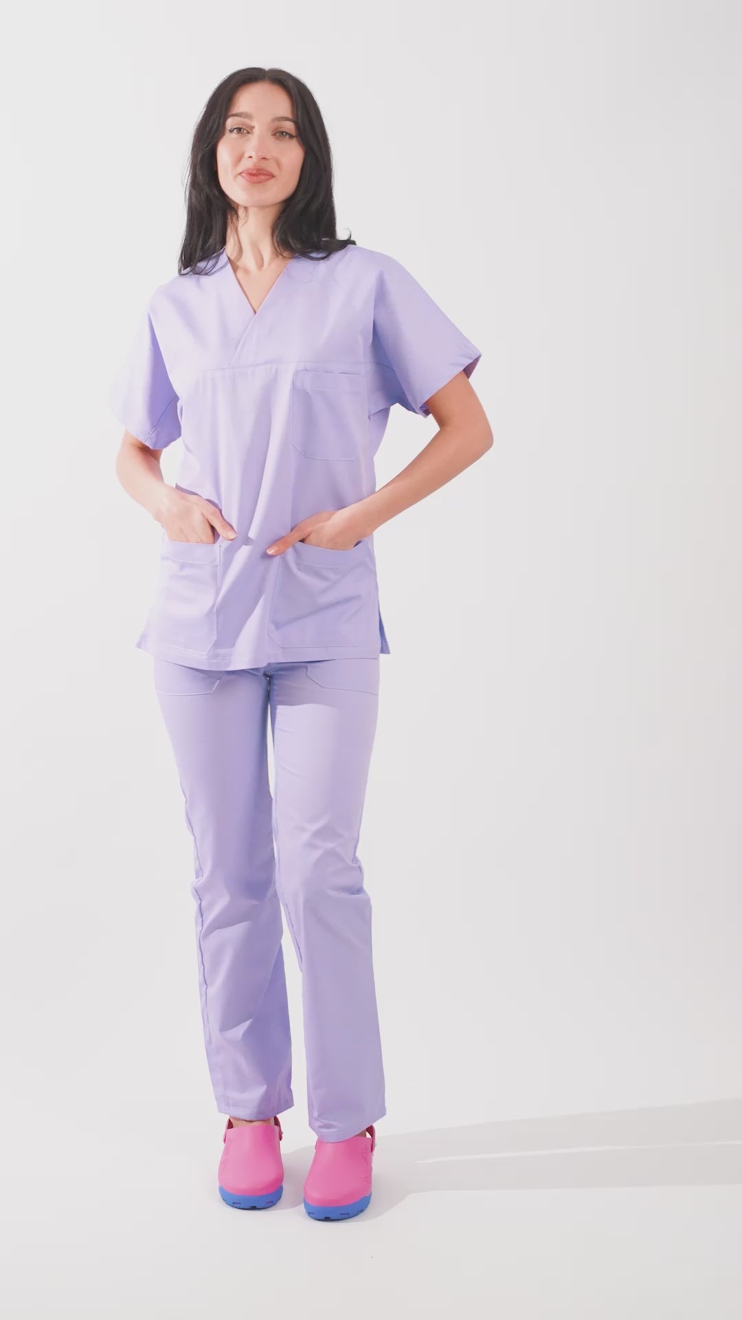 La Divisa Elisa è una divisa completa ospedaliera, casacca con scollo a v sormontato, 2 tasche anteriori e 1 taschino sul petto. Pantaloni con 2 tasche anteriori 1 sul retro vita elastica e coulisse regolabile con laccetti
